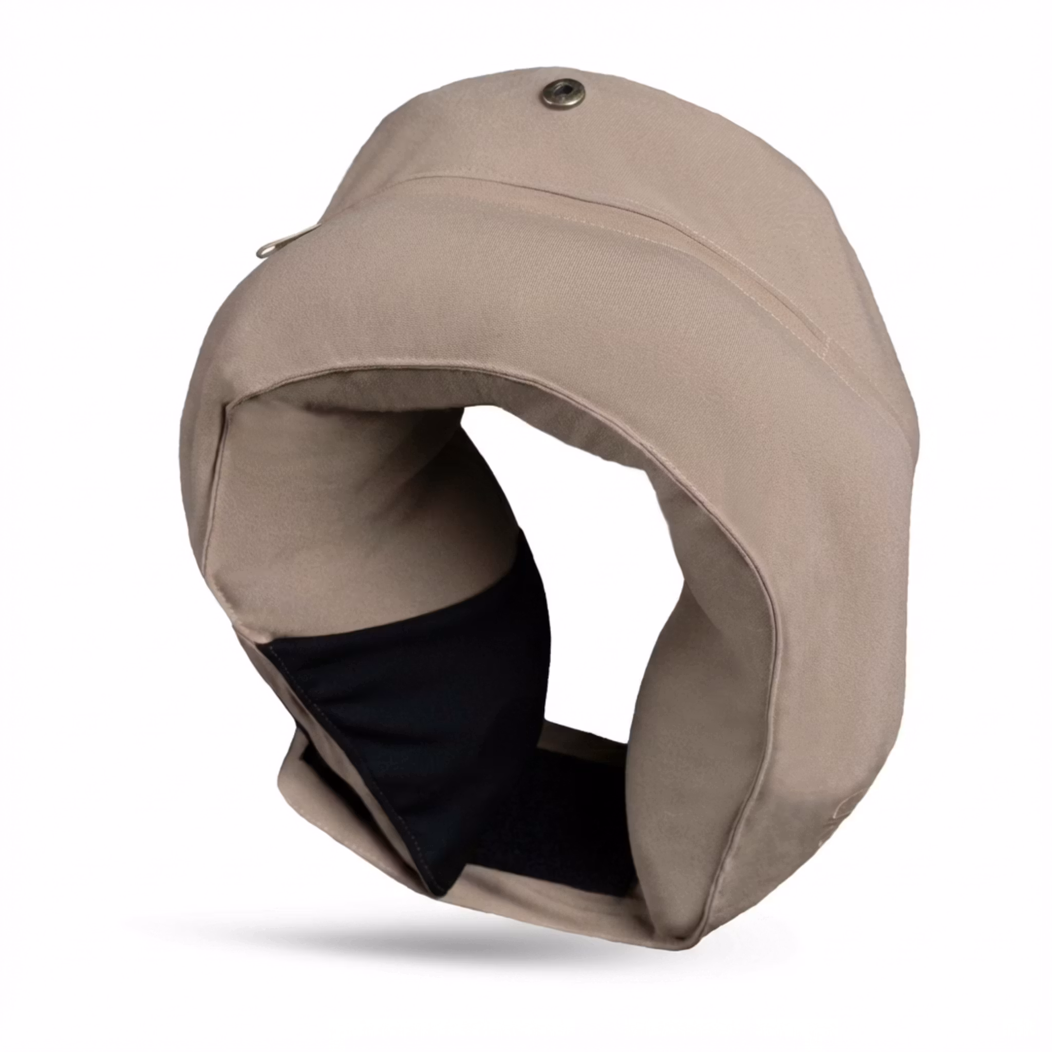 Ovaer nackkudde med huva Generation II kombinerar ett stabilt ergonomiskt 360° nackstöd med en justerbar konstruktion och en integrerad huva som skapar mörker och en privat sfär. Det ger optimala förutsättningar för djup sömn och återhämtning, även när omgivningen är ljus och full av intryck.